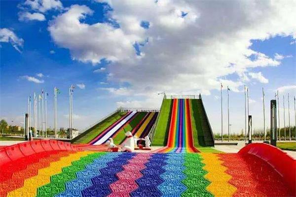 目前彩虹滑道的種類設計有:直滑道、波浪滑道、飛包滑道、浪擺滑道等,這個項目在抖音上也是火爆,大一點的小朋友們也可以玩。