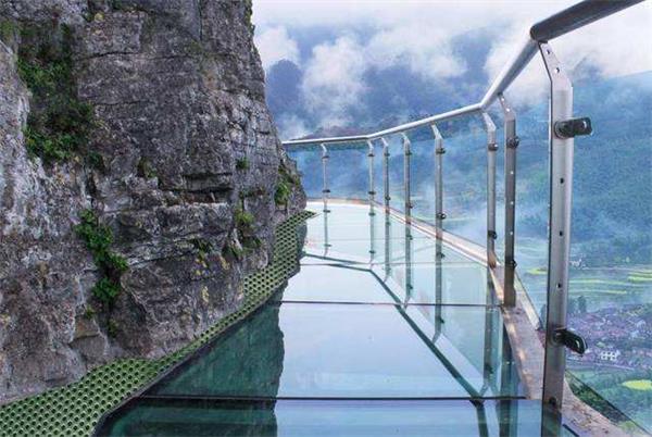 在玻璃上面行走,而玻璃下就是萬丈懸崖,有的景區的玻璃棧道還會隨腳步制造出玻璃碎裂假象,很刺激有目有?玻璃棧道比較有名的有:天門山玻璃棧道,張家界大峽谷玻璃橋,保定狼牙山玻璃橋,石牛寨玻璃橋,其中石牛寨玻璃橋是目前世界上最高的玻璃橋,高達180米,全長300米左右。
