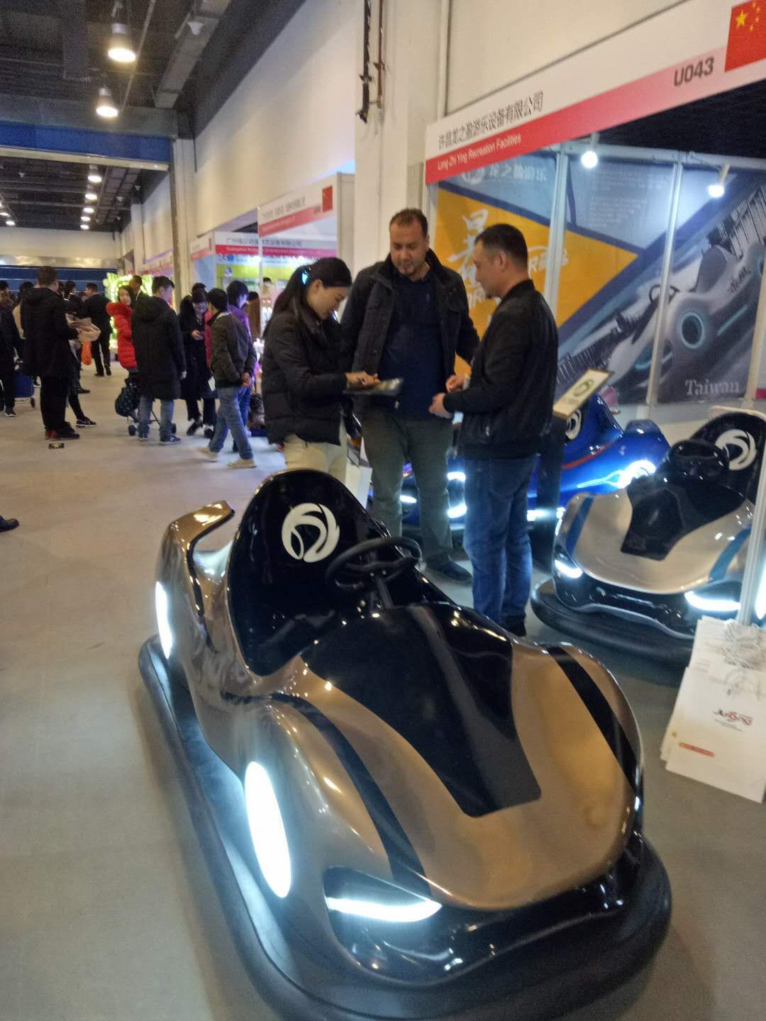 這家展臺的承辦方是龍之盈游樂設(shè)備有限公司,而備受關(guān)注的產(chǎn)品竟然是一輛碰碰車。當(dāng)我在這家公司的展臺旁觀看的這段時間里,來來往往詢問著輛碰碰車的人竟不下五十人,其中還包括部分外國友人。